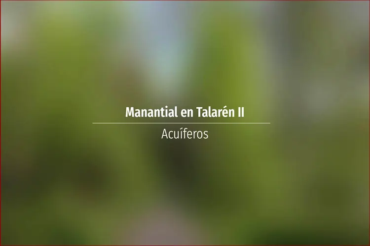 Manantial en Talarén II. Acuífero en Asturias: Cuenca: Norte Unidad Hidrogeológica: Unidades aisladas Sistema acuifero: Acuífero aislado Cota: 110 Naturaleza: Manantial Uso: Lavadero público Perímetro: No se sabe Nota: Si no ...