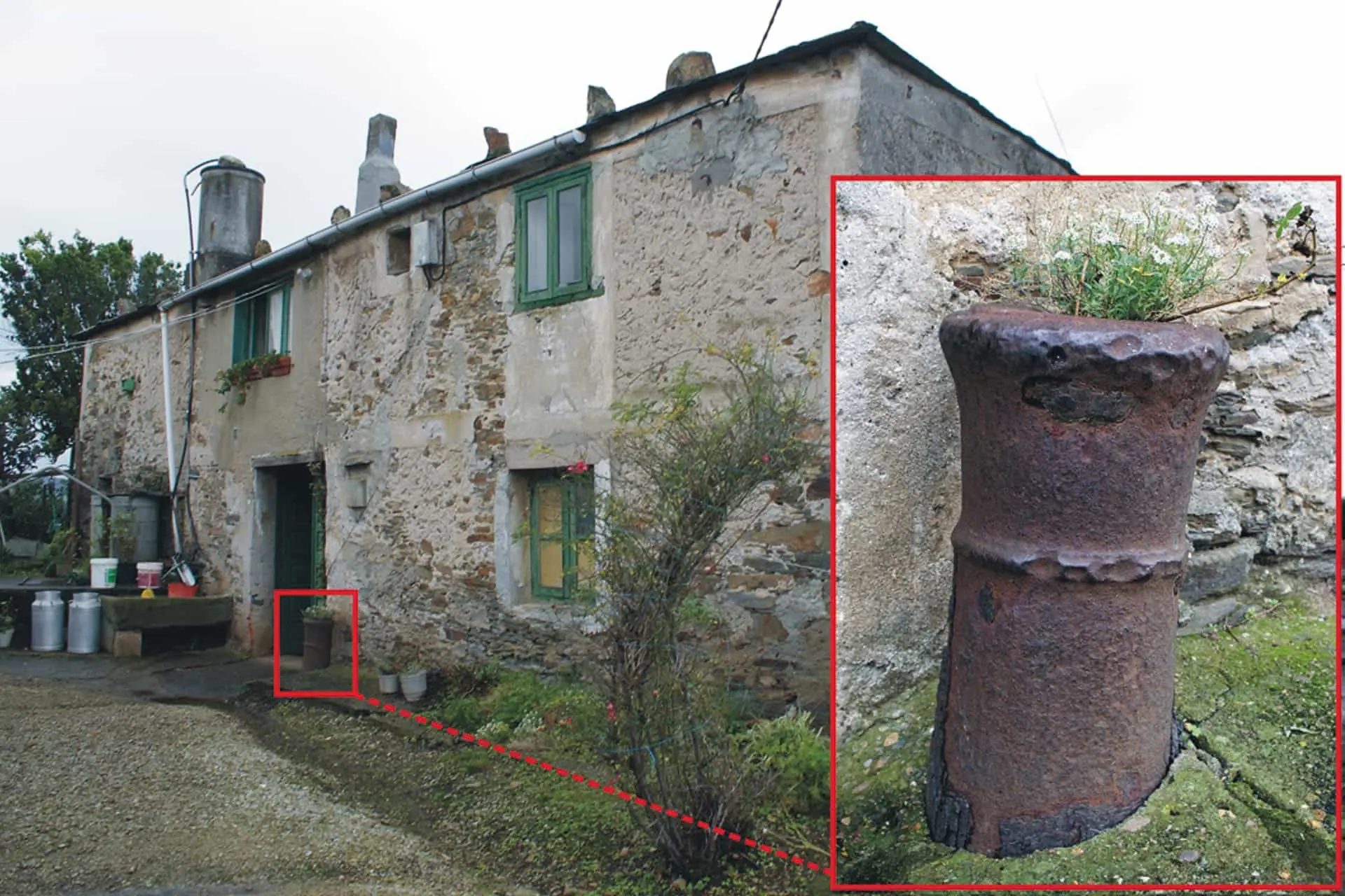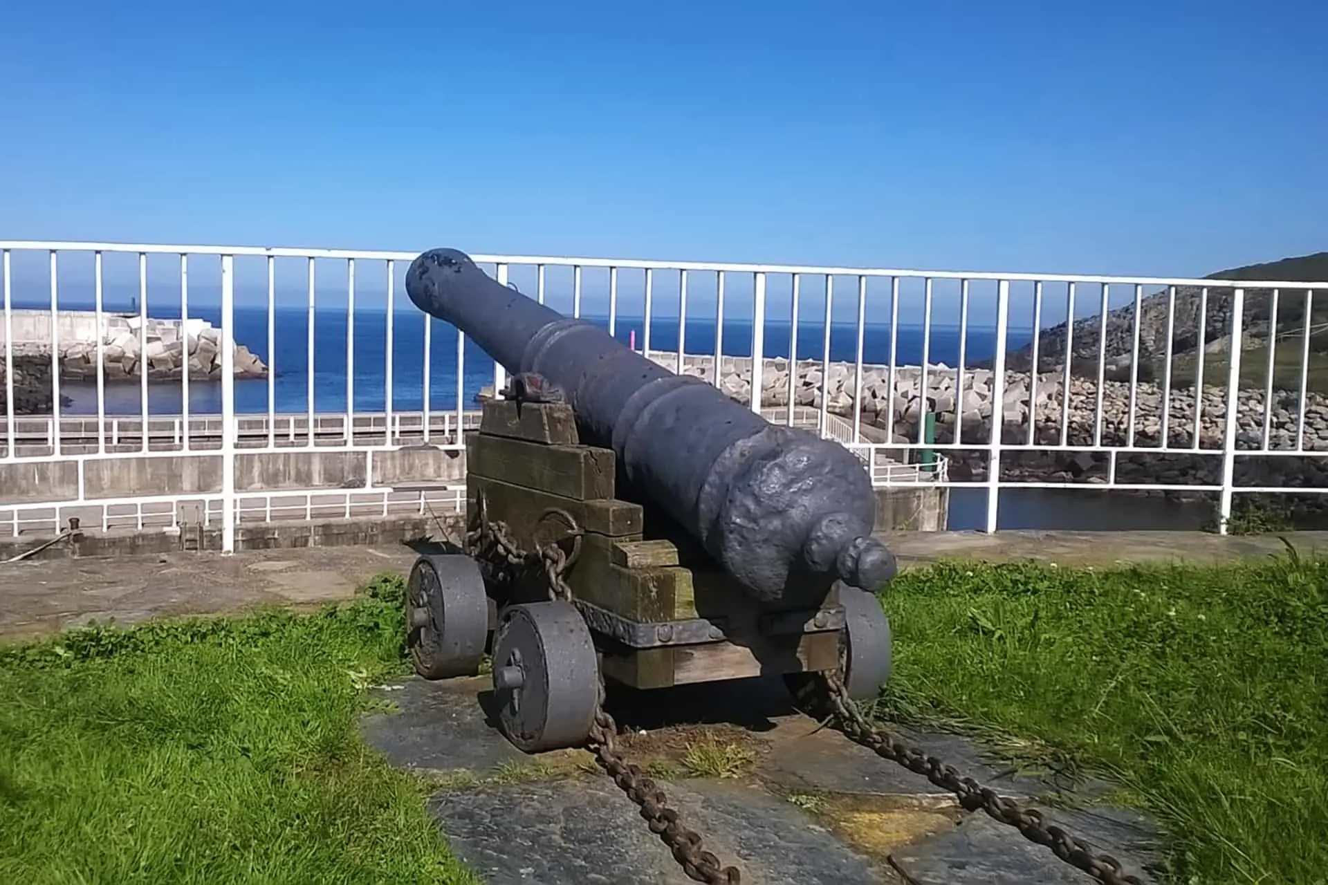 Cañón - bolardo de Andés. Las informaciones obtenidas en Puerto de Vega nos permitieron descubrir este cañón junto a la puerta principal de una vivienda del pueblo de Andés. Se trata de una pieza de hierro que fue hincada con la boca h ...